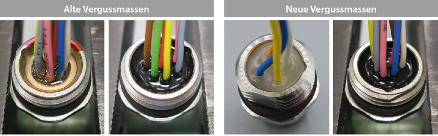 Die aktuell eingesetzten Vergussmassen werden durch eine – je nach Ausführung – andere Epoxidharz-Vergussmasse ersetzt.