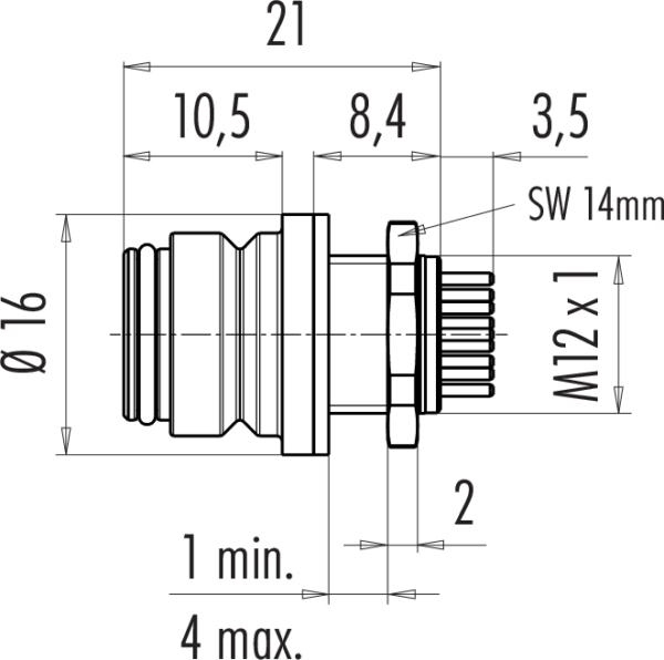Polzahl: 8, nicht geschirmt, löten, IP67