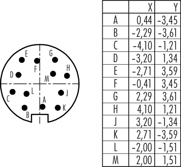 Pólusok száma: 12, 4,0 - 6,0 mm, nem árnyékolható, forrasztás, IP40