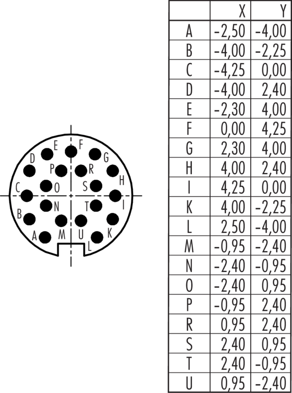 Pólusok száma: 19, 6,0 - 8,0 mm, nem árnyékolható, forrasztás, IP67
