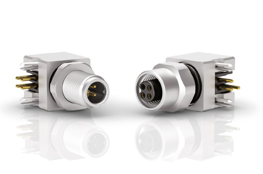 Sie sind in ihrer Abmessung 7,5 x 7,5 mm kompakt designt. Dank der gespreizten Positionierpins sitzt der Steckverbinder bereits vor dem Lötprozess stabil auf der Leiterplatte. Die Schraubverriegelung sorgt für eine sichere Verbindung mit dem Gegenstück. Der im Flanschgehäuse tieferliegende O-Ring kann bis auf Anschlag definiert verpresst werden und sorgt für eine zuverlässige Abdichtung im Einsatz.