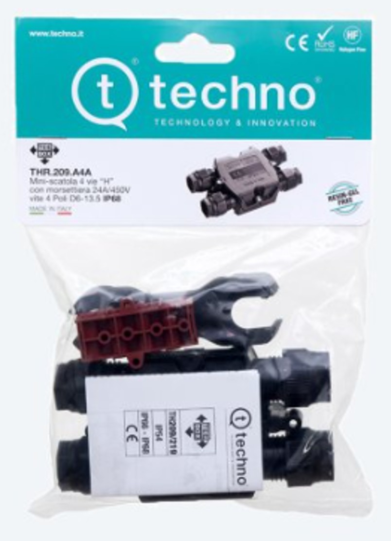 | Datenblatt | KIT Junction box 4 ways 4p Screw D6-13.5 IP68 (techno.it) |
