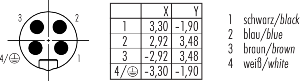 Polzahl: 4, nicht geschirmt, tauchlöten, IP68, UL