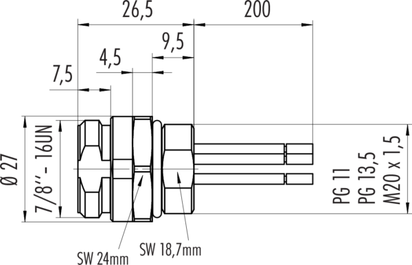 Polzahl: 2+PE, nicht geschirmt, Litzen, IP68, UL