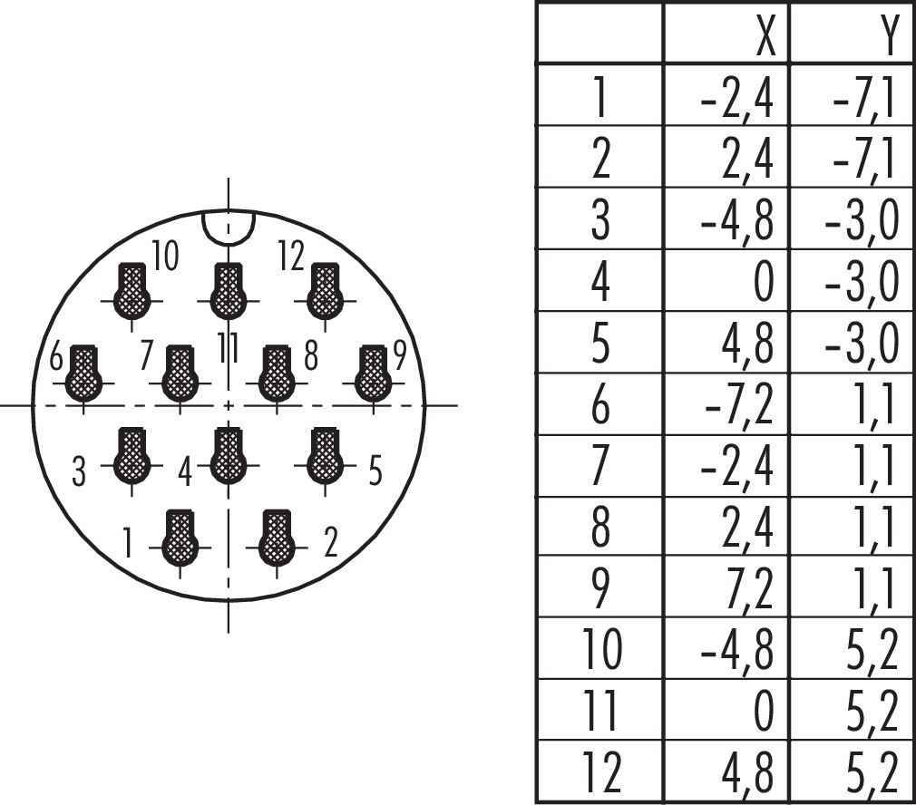 Polzahl: 12, 7,0 – 13,0 mm, nicht schirmbar, crimpen (Crimpkontakte müssen separat bestellt werden), IP68, IP69K, UL, VDE