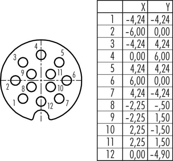 Polzahl: 12, 5,0 – 8,0 mm, nicht schirmbar, löten, IP40