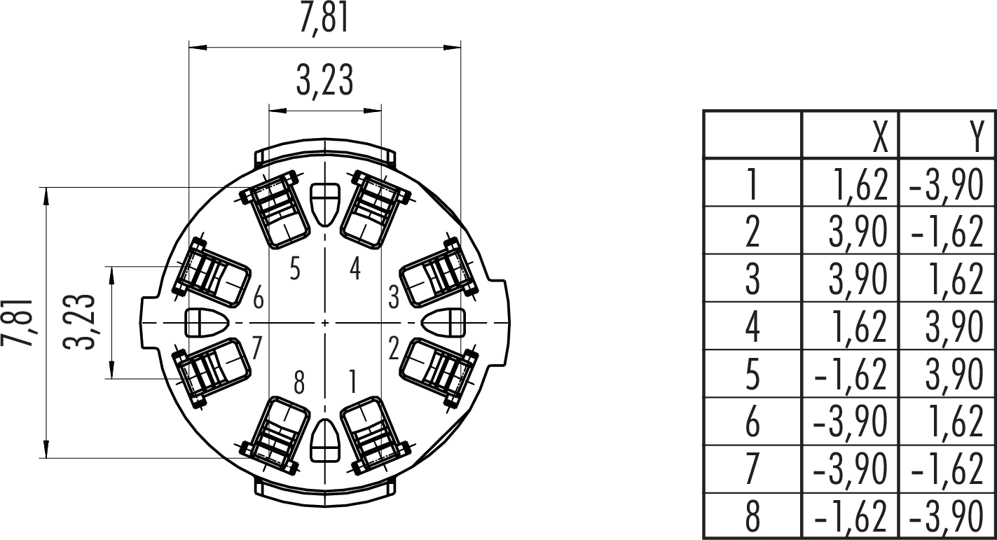Polzahl: 8, nicht schirmbar, löten, IP67