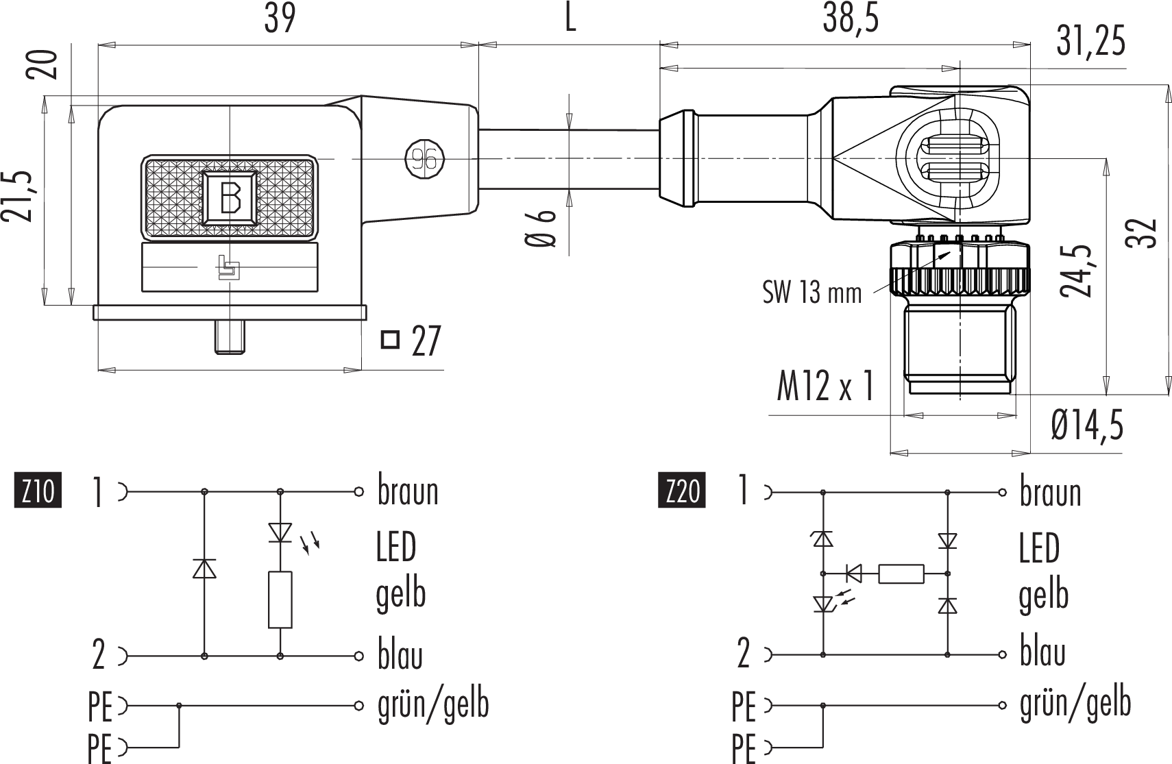 Polzahl: 2+2PE, nicht geschirmt, schrauben, IP67, Standard Kabel