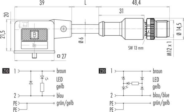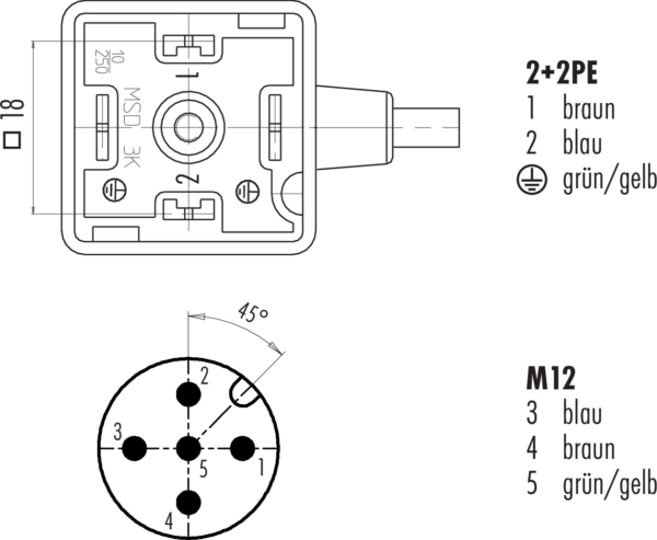 Polzahl: 2+2PE, nicht geschirmt, schrauben, IP67, Standard Kabel