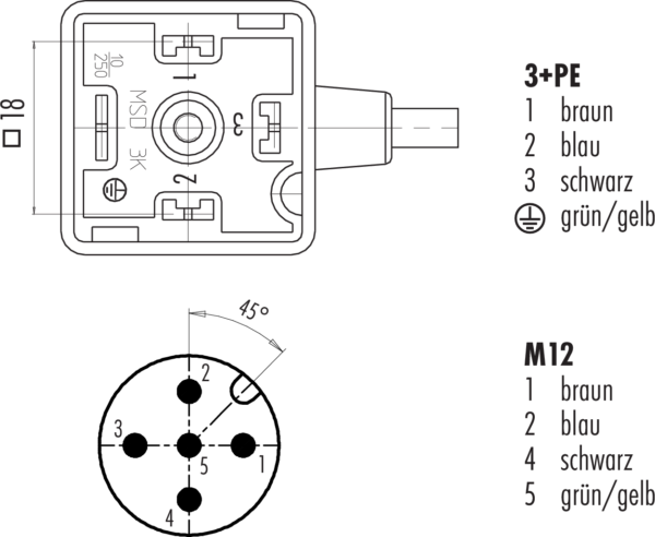 Polzahl: 3+PE, nicht geschirmt, schrauben, IP67, Standard Kabel