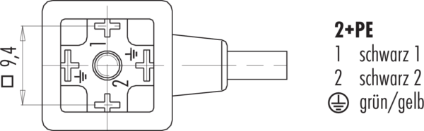 Polzahl: 2+2PE, nicht geschirmt, löten, crimpen, am Kabel angespritzt, IP67, PUR Kabel schwarz