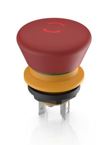 LUMOTAST 16, Not-Halt-Taster, beleuchtbar, 2 Ö, Gold, Flachsteckanschluss 2,8 x 0,5 verzinnt, Rückstellung durch Drehen, Pfeile rot, beleuchtbar