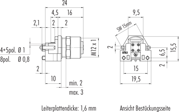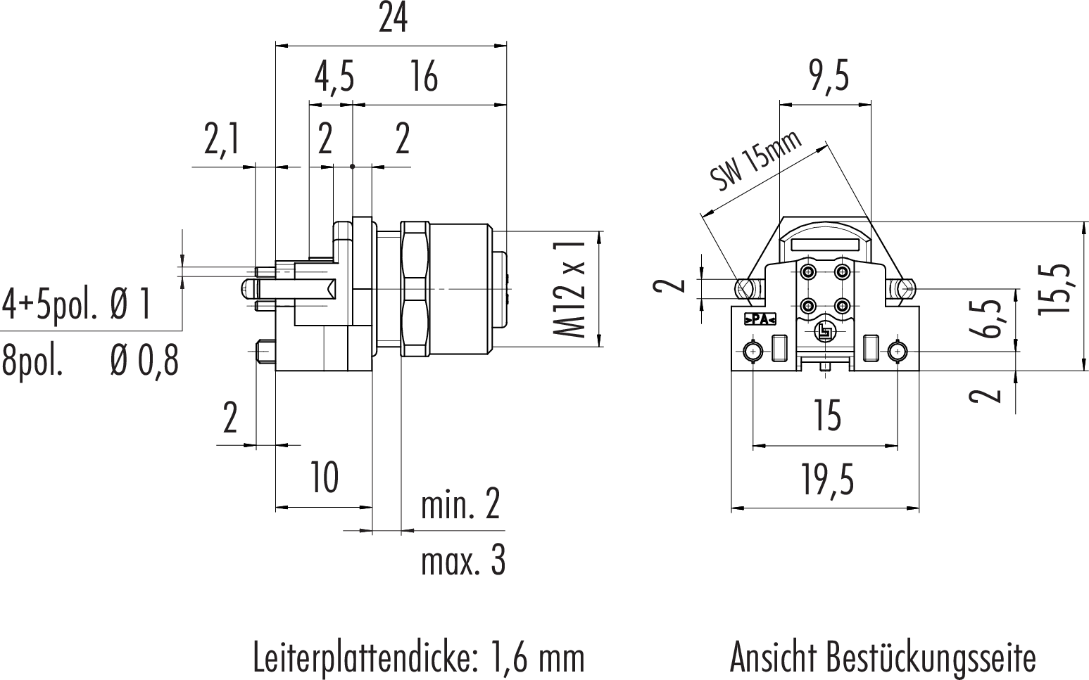 Polzahl: 4, schirmbar, tauchlöten, IP68, UL