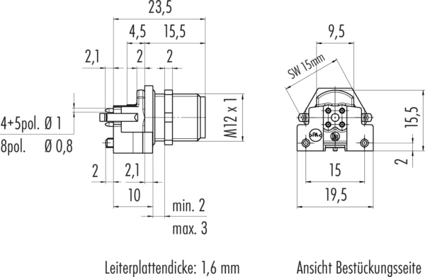 Polzahl: 4, nicht geschirmt, tauchlöten, IP68, UL