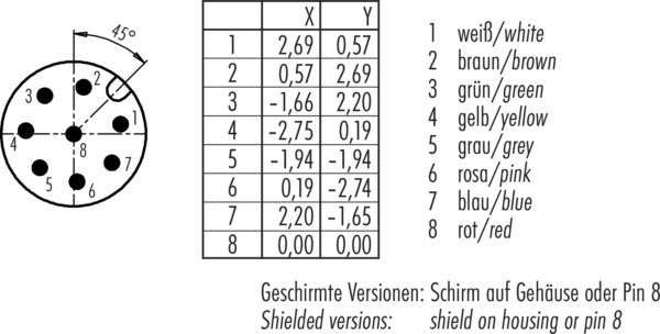 Polzahl: 8, nicht geschirmt, tauchlöten, IP68, UL