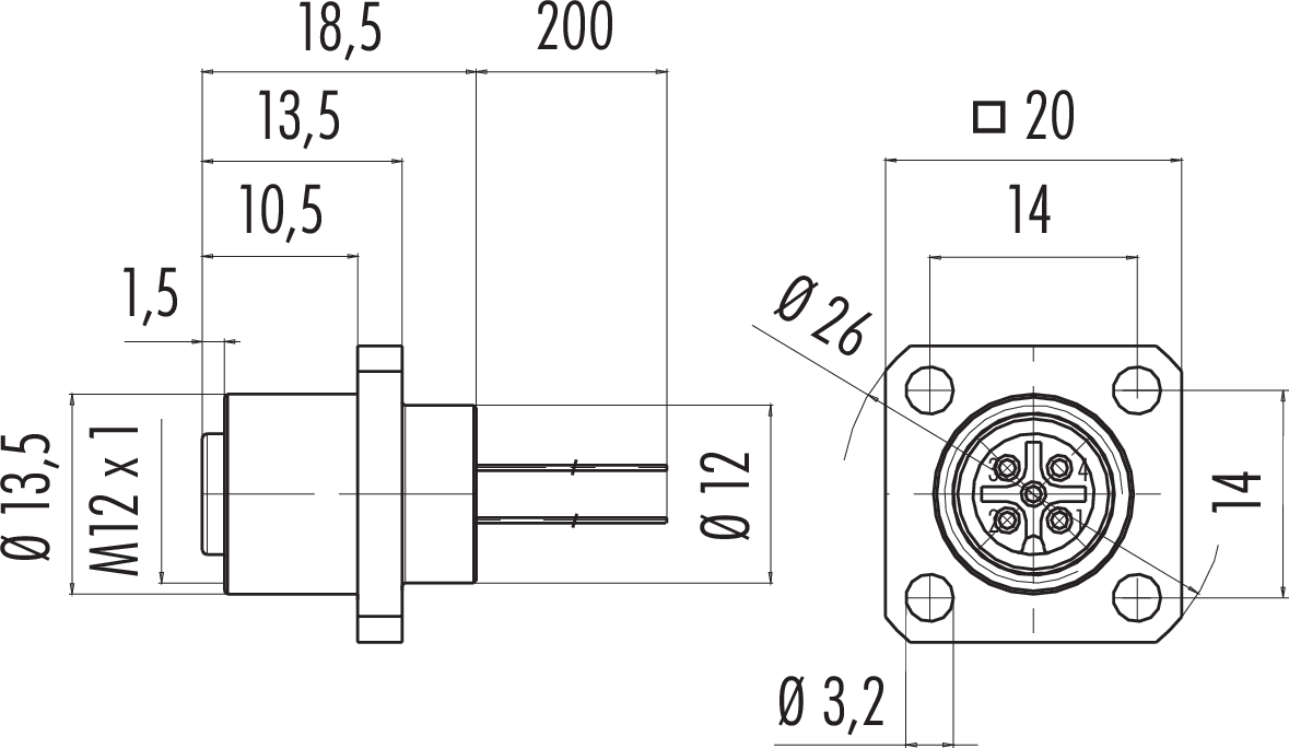 Polzahl: 4, nicht geschirmt, Litzen, IP68