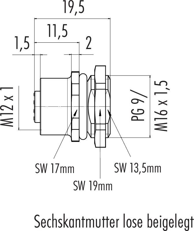 Polzahl: 4, nicht geschirmt, löten, IP68, UL, PG9