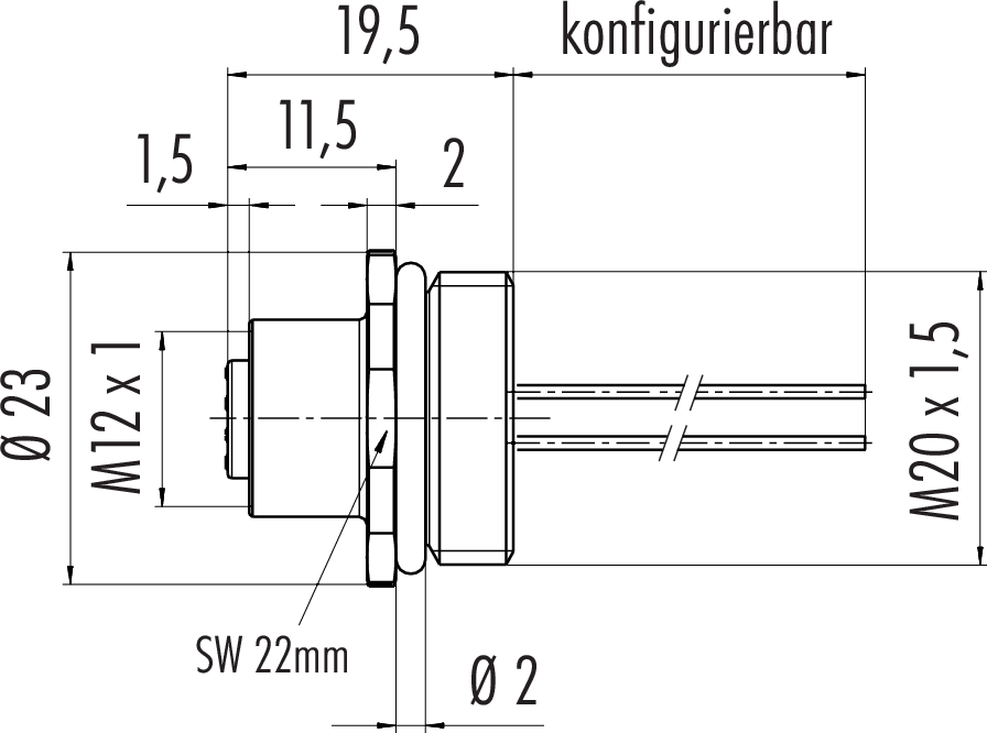 Polzahl: 12, nicht geschirmt, Litzen UL 1007/1569, IP68, UL, M20x1,5