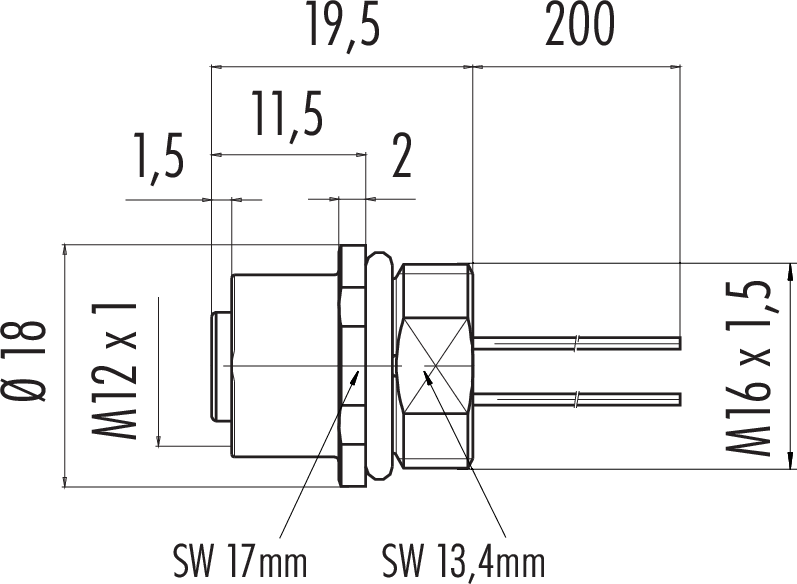 Polzahl: 12, nicht geschirmt, Litzen UL 1007/1569, IP67, UL, M16x1,5 Kunststoff