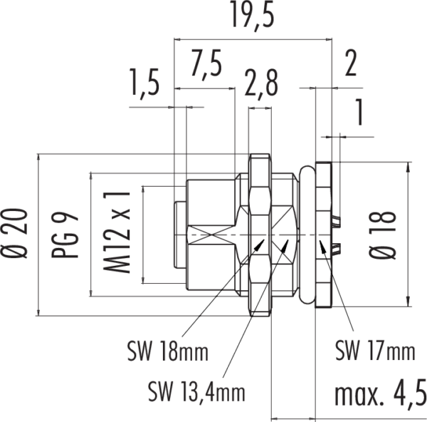 Polzahl: 5, nicht geschirmt, löten, IP68, UL, M16x1,5