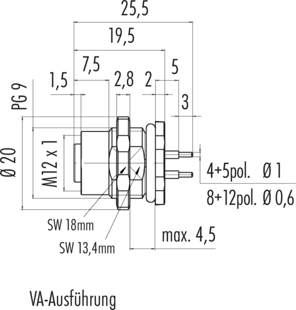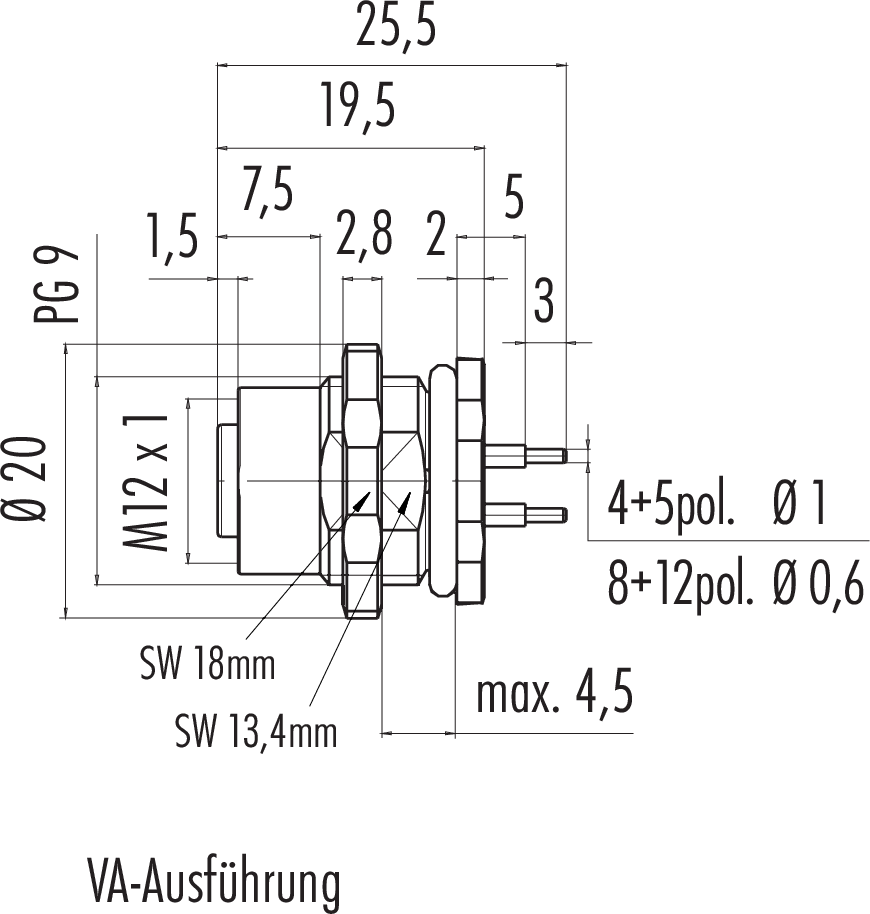Polzahl: 5, nicht geschirmt, tauchlöten, IP68, UL, M16x1,5, PG9