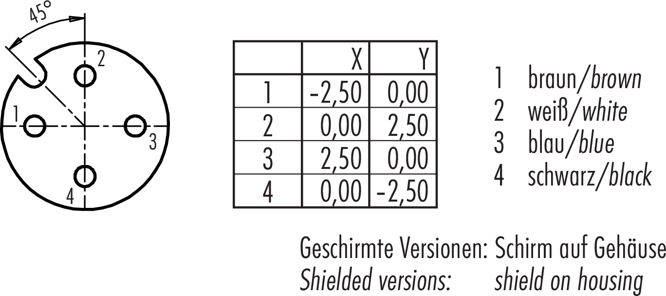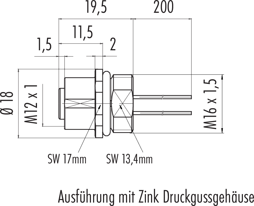 Polzahl: 4, nicht geschirmt, Litzen UL 1007/1569, IP68, UL, M16x1,5