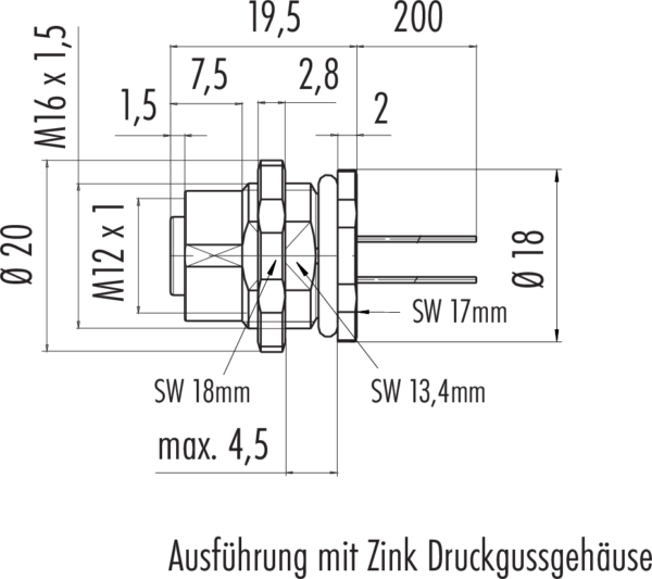 Polzahl: 4, nicht geschirmt, Litzen UL 1007/1569, IP68, UL, M16x1,5 FMT