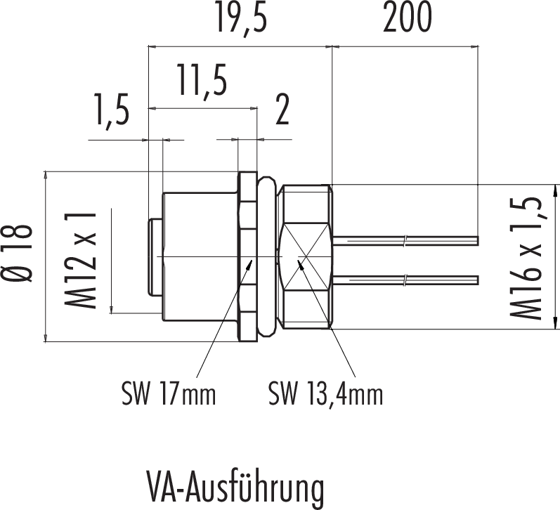 Polzahl: 4, nicht geschirmt, Litzen UL 1007/1569, IP68, UL, M16x1,5