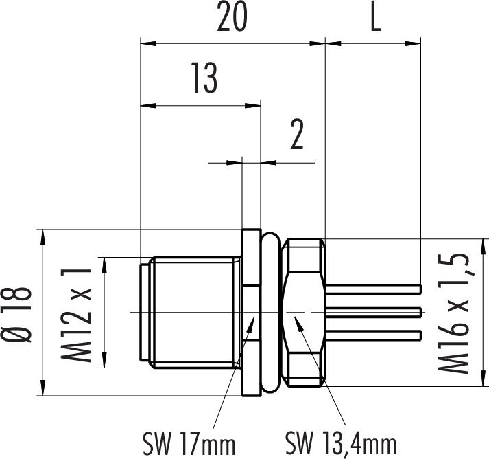 Polzahl: 4, nicht geschirmt, Litzen UL 1007/1569, IP68, UL, M16x1,5 Kunststoff