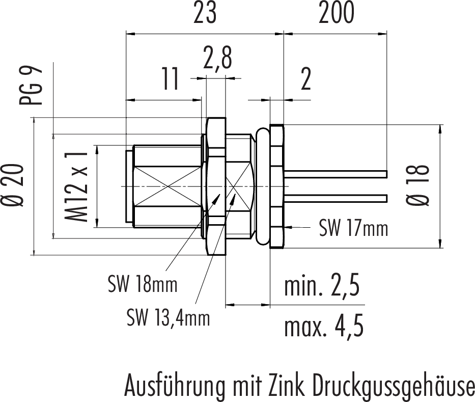 Polzahl: 4, nicht geschirmt, Litzen UL 1007/1569, IP68, UL, PG9 FMT VA