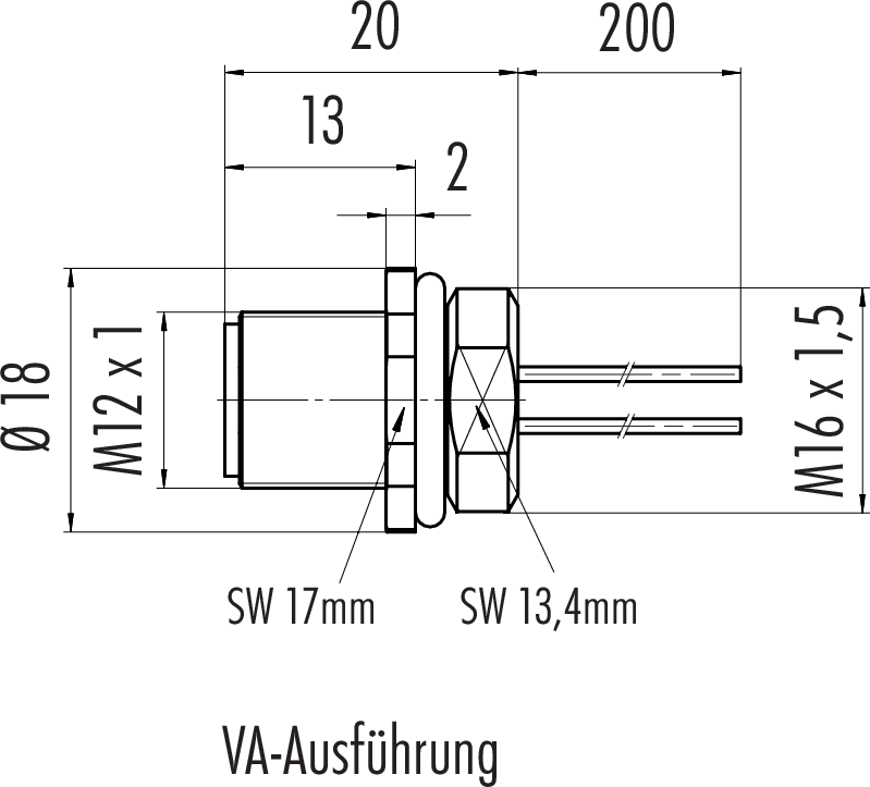 Polzahl: 5, nicht geschirmt, Litzen UL 1007/1569, IP68, UL, M16 VA