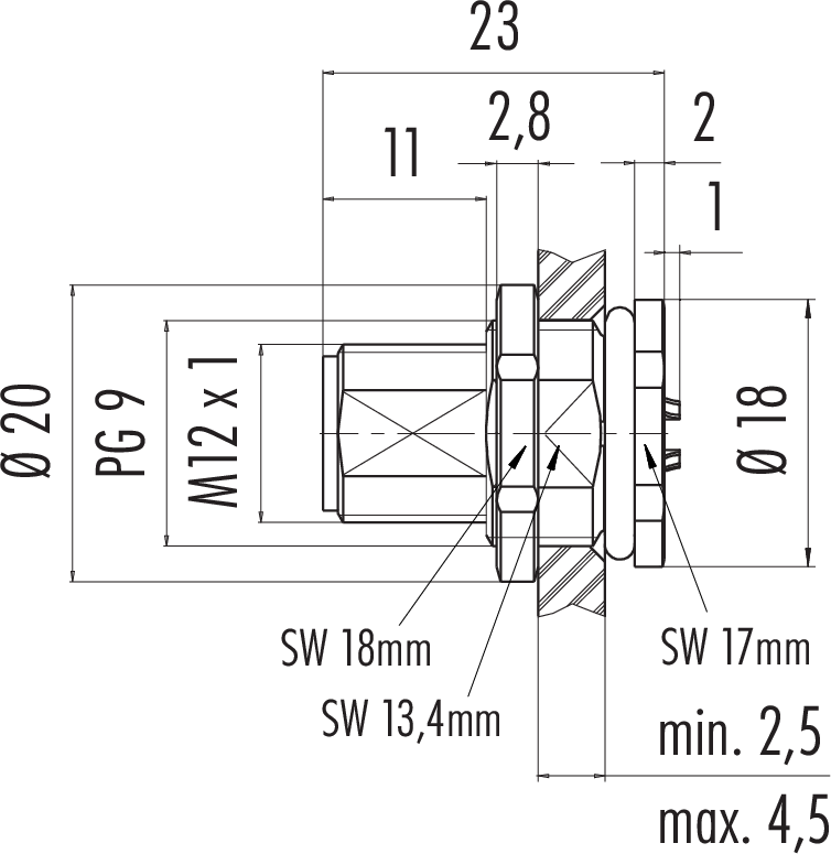 Polzahl: 5, nicht geschirmt, löten, IP68, UL, PG9