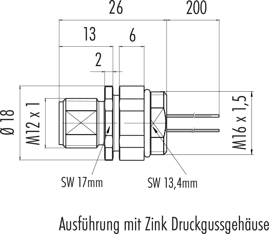 Polzahl: 8, nicht geschirmt, Litzen UL 1007/1569, IP68, UL, M16x1,5 pos.