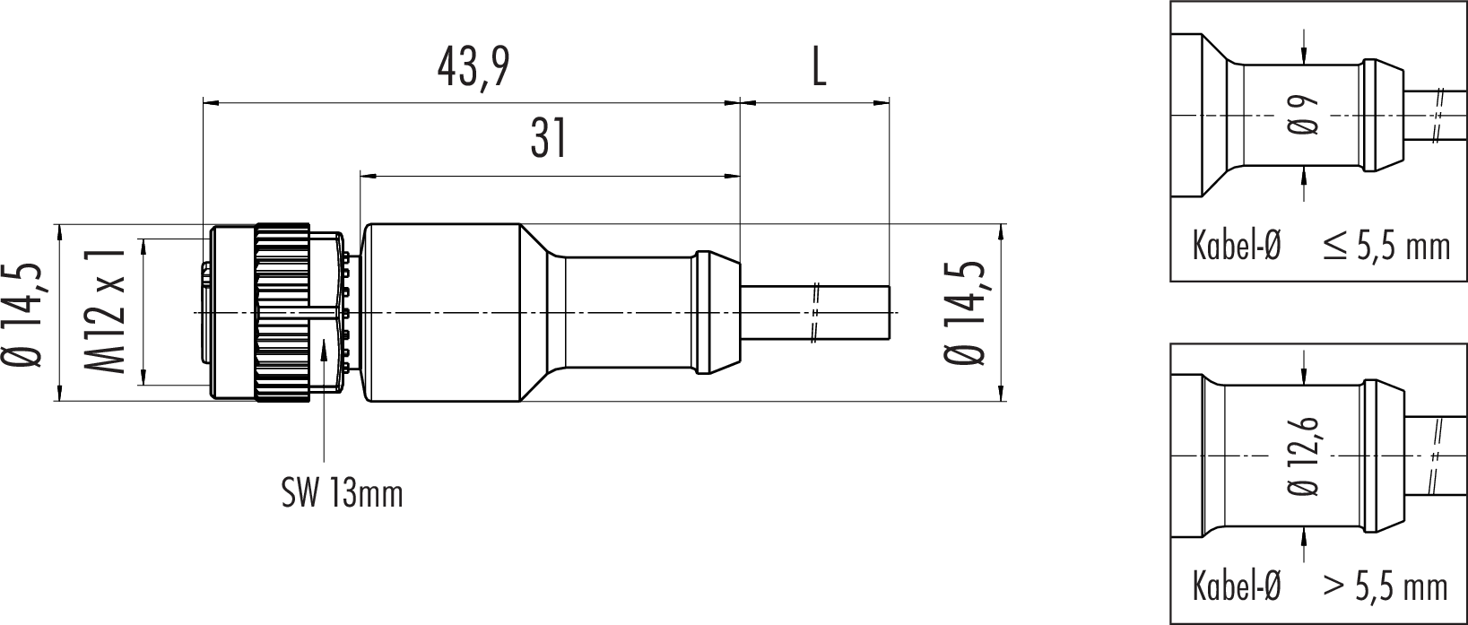 | Anschlussart | crimpen, am Kabel angespritzt |