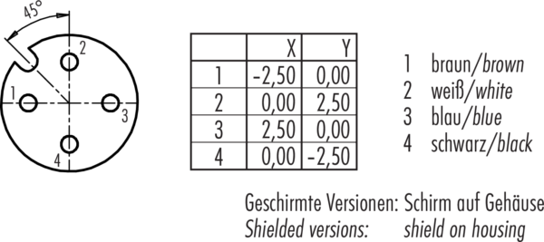 | Anschlussart | crimpen, am Kabel angespritzt |