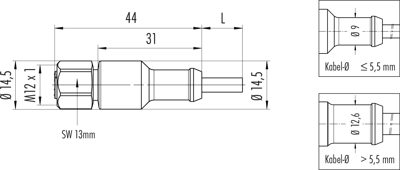 | Anschlussart | crimpen, am Kabel angespritzt |