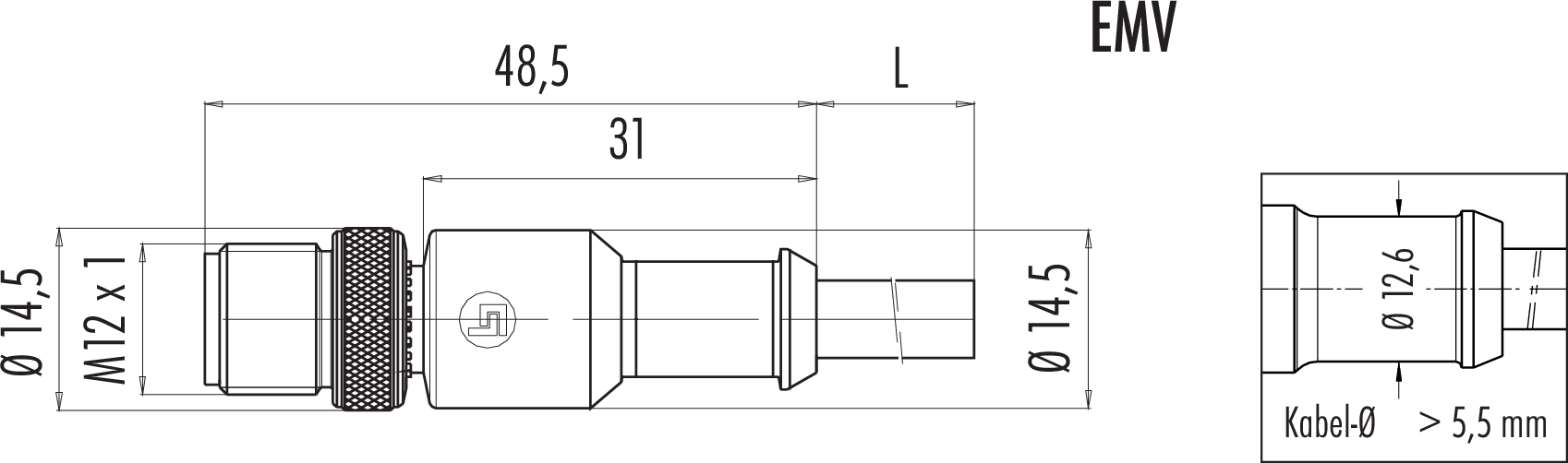 Polzahl: 3, geschirmt, crimpen, am Kabel angespritzt, IP67, UL listed, PVC Kabel schwarz, 3 x 0,34 mm²