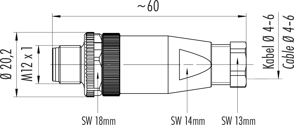 Polzahl: 4, 6,0 – 8,0 mm, nicht geschirmt, crimpen (Crimpkontakte müssen separat bestellt werden), IP67, UL