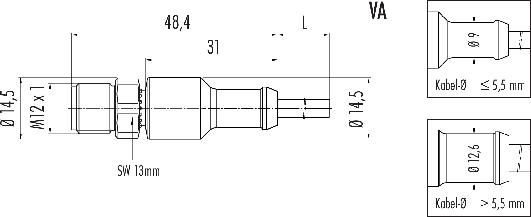 | Anschlussart | crimpen, am Kabel angespritzt |