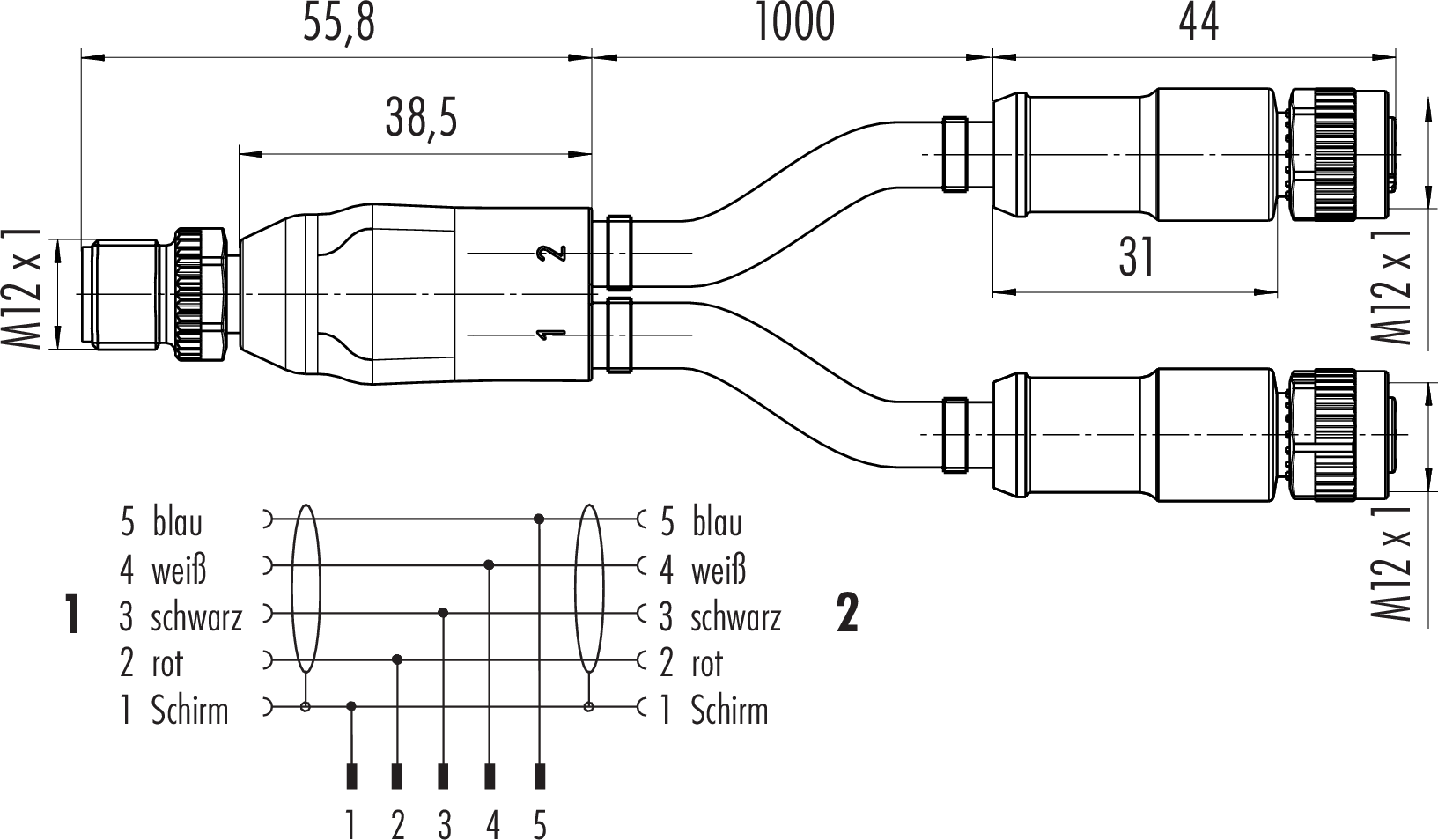 | Anschlussart | crimpen, am Kabel angespritzt |