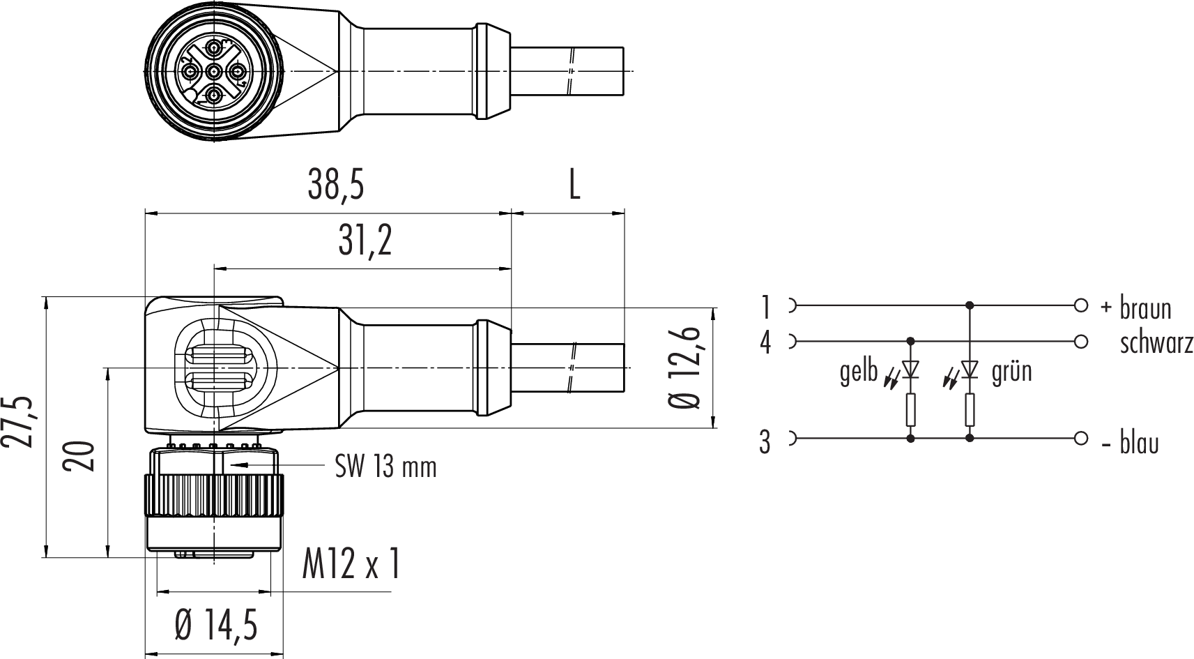 Polzahl: 3, nicht geschirmt, crimpen, am Kabel angespritzt, IP69K, UL listed, PVC Kabel grau, 3 x 0,34 mm²