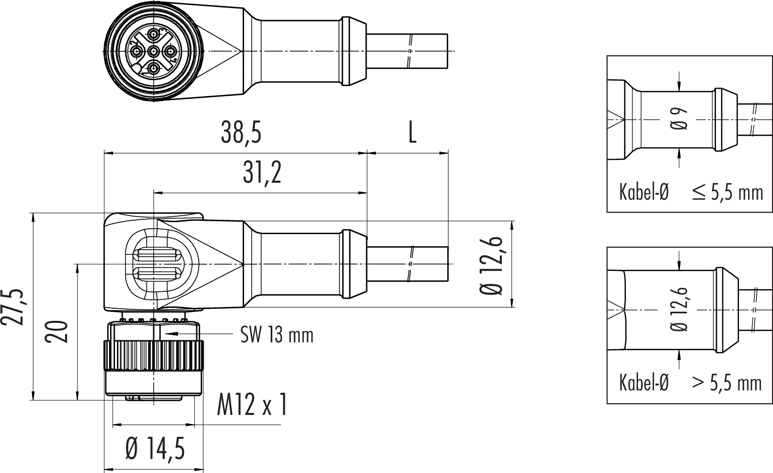| Ausführung | Steckverbinder Buchse gewinkelt |
