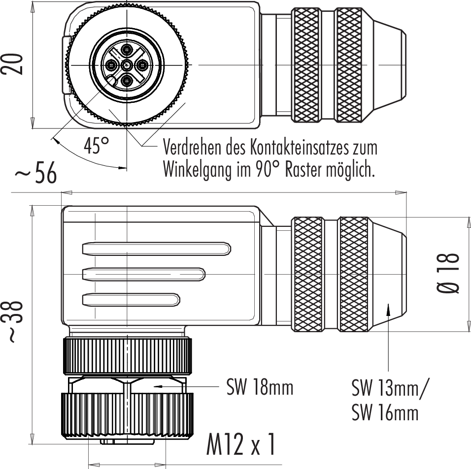 | Ausführung | Steckverbinder Buchse gewinkelt |