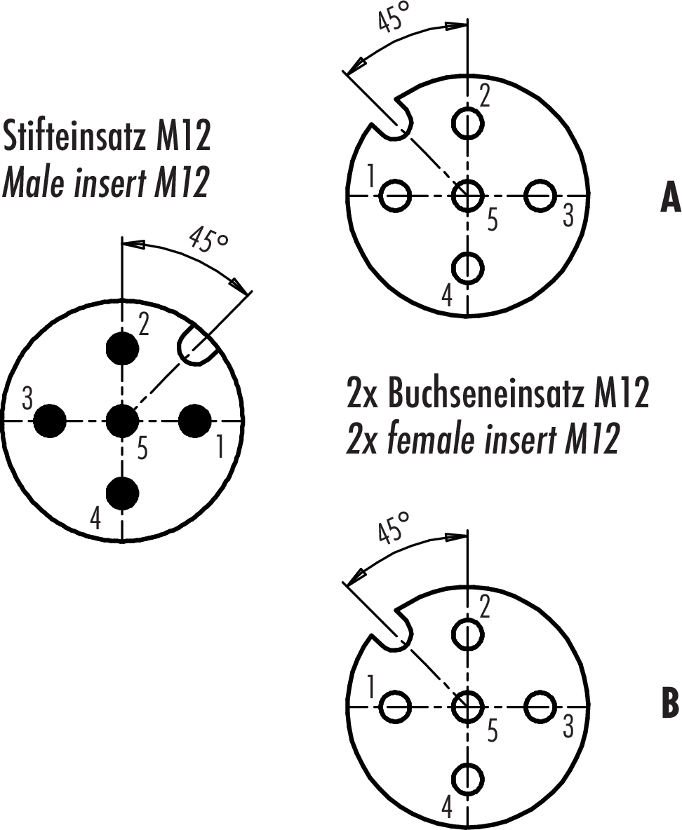 Polzahl: 5/5, nicht geschirmt, steckbar, IP68, UL listed, M12x1