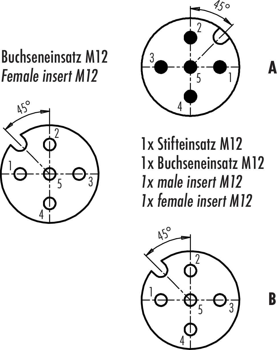 Polzahl: 5, nicht geschirmt, steckbar, IP68, UL listed, M12x1