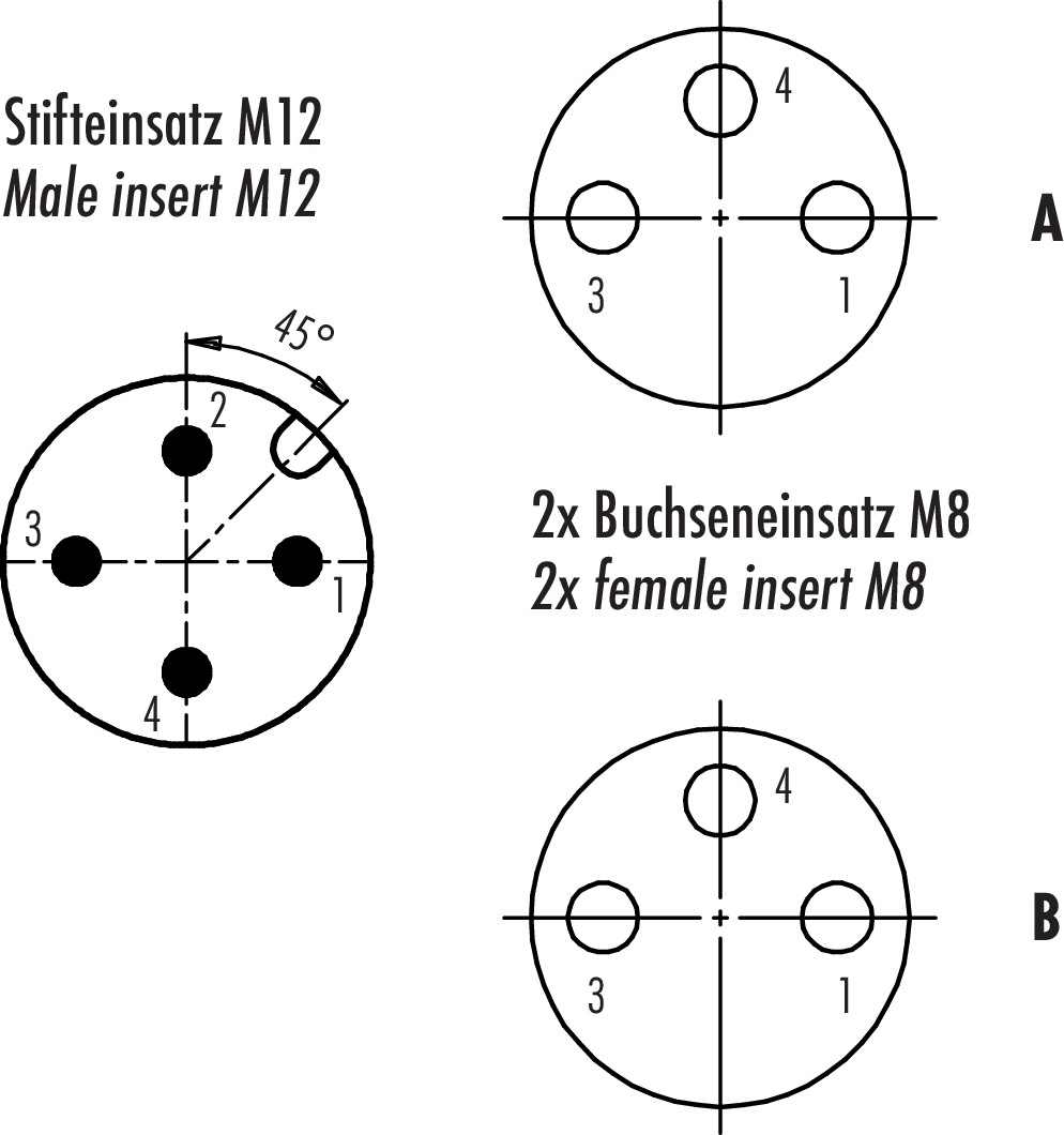 Polzahl: 4/3, nicht geschirmt, steckbar, IP68, UL listed