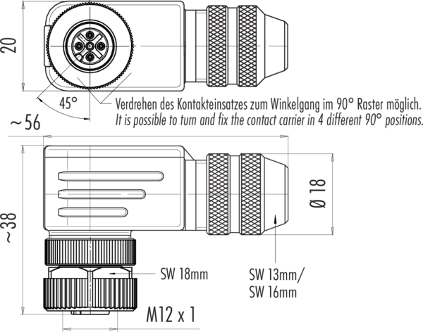 | Ausführung | Steckverbinder Buchse gewinkelt |