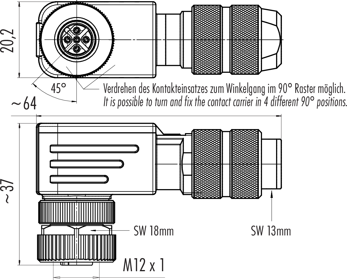 | Ausführung | Steckverbinder Buchse gewinkelt |