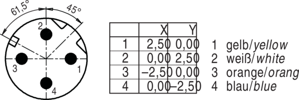 Polzahl: 4, nicht geschirmt, tauchlöten, IP67, UL