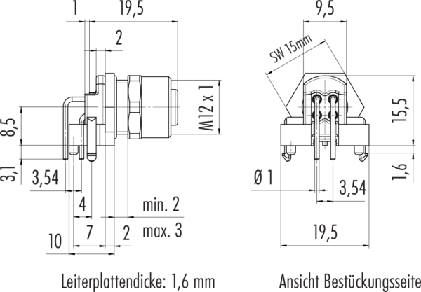 Polzahl: 4, nicht geschirmt, tauchlöten, IP67, UL